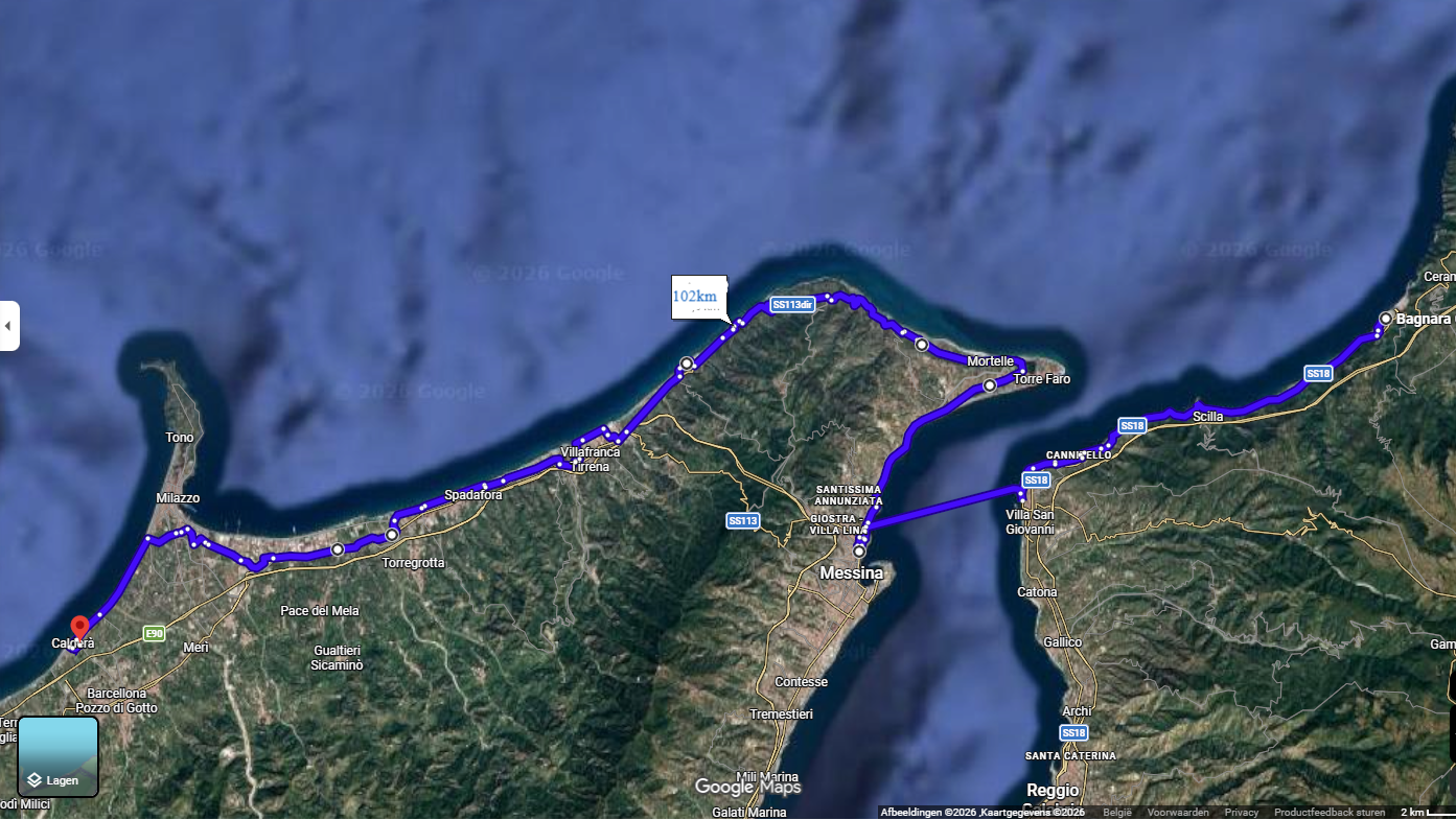 De Italiaanse regering heeft de bouw van een brug over de straat van Messina goedgekeurd. President Pietro Materella gaf al zijn fiat. Het zou een ophangbrug worden tusen Torre Faro, de uiterste noordoostelijke punt van Sicilië en een landingspunt op het grondgebied van Villa San Giovanni, waar de zeestraat nog slechts iets meer dan 3 km breed is. Ze zou zes rijstroken tellen, twee spoorlijnen en twee voetpaden. Ik vermoed dat die laatste ook door fietsers kunnen worden gebruikt, of zouden ze die weer vergeten zijn in hun ontwerp? Met haar 3300 meter zou ze meteen de langste hangbrug ter wereld worden. Er is een planning in fasen opgesteld en de voorbereiding en gedetailleerde ontwerpen zouden in 2026 starten. De bouw zelf volgt later. Als alles verloopt zoals gepland zou de opening rond 2032-33 plaats vinden, aldus de huidige minister van Infrastructuur Matteo Salvini.
